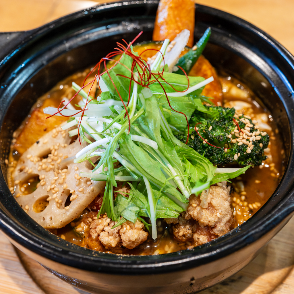 ザンギ2つとベジタブルにオリジナルスープ 辛さ5番です。