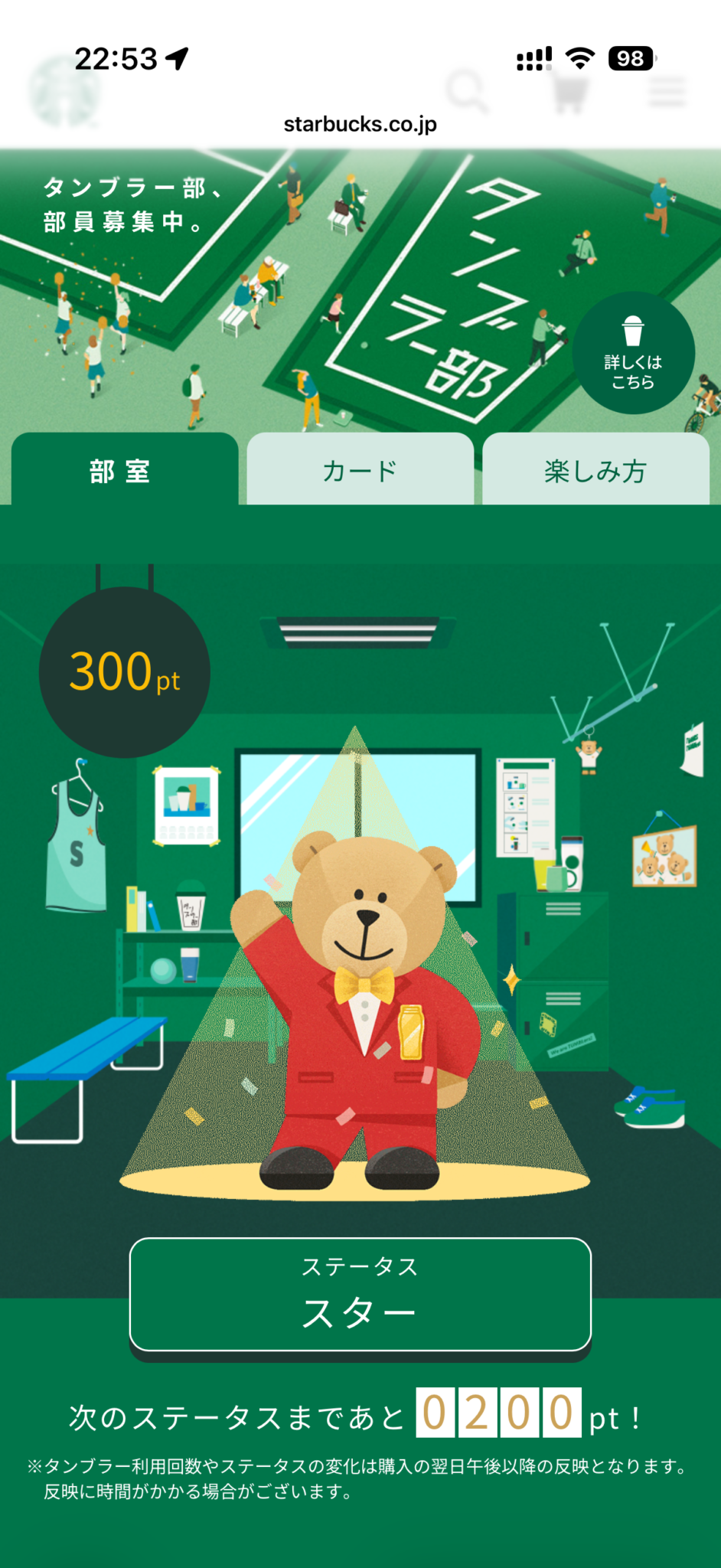 ようやくタンブラー部のステータスがスターに。